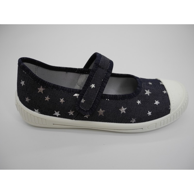 Ballerine en toile doublé coton, semelle synthétique micro perforée pour évacuer la transpiration.